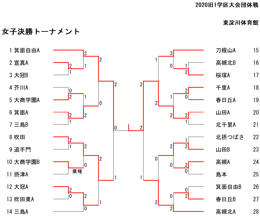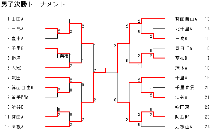 ・男子について、箕面自由Aと箕面自由B、高槻Aと高槻B が同一の山に入ったので、高槻Bと箕面自由Bを入れ替えました。